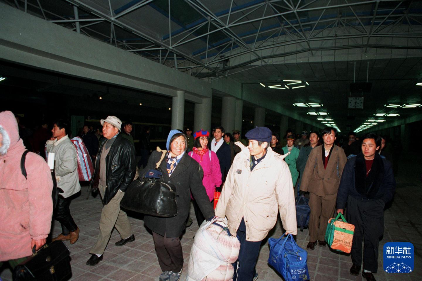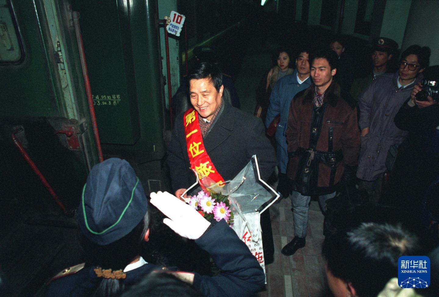 1996年1月22日凌晨3点29分,北京西站迎来首列从郑州开来的列车。这是第一批在北京西站下车的外地乘客。新华社记者 宋连峰 摄