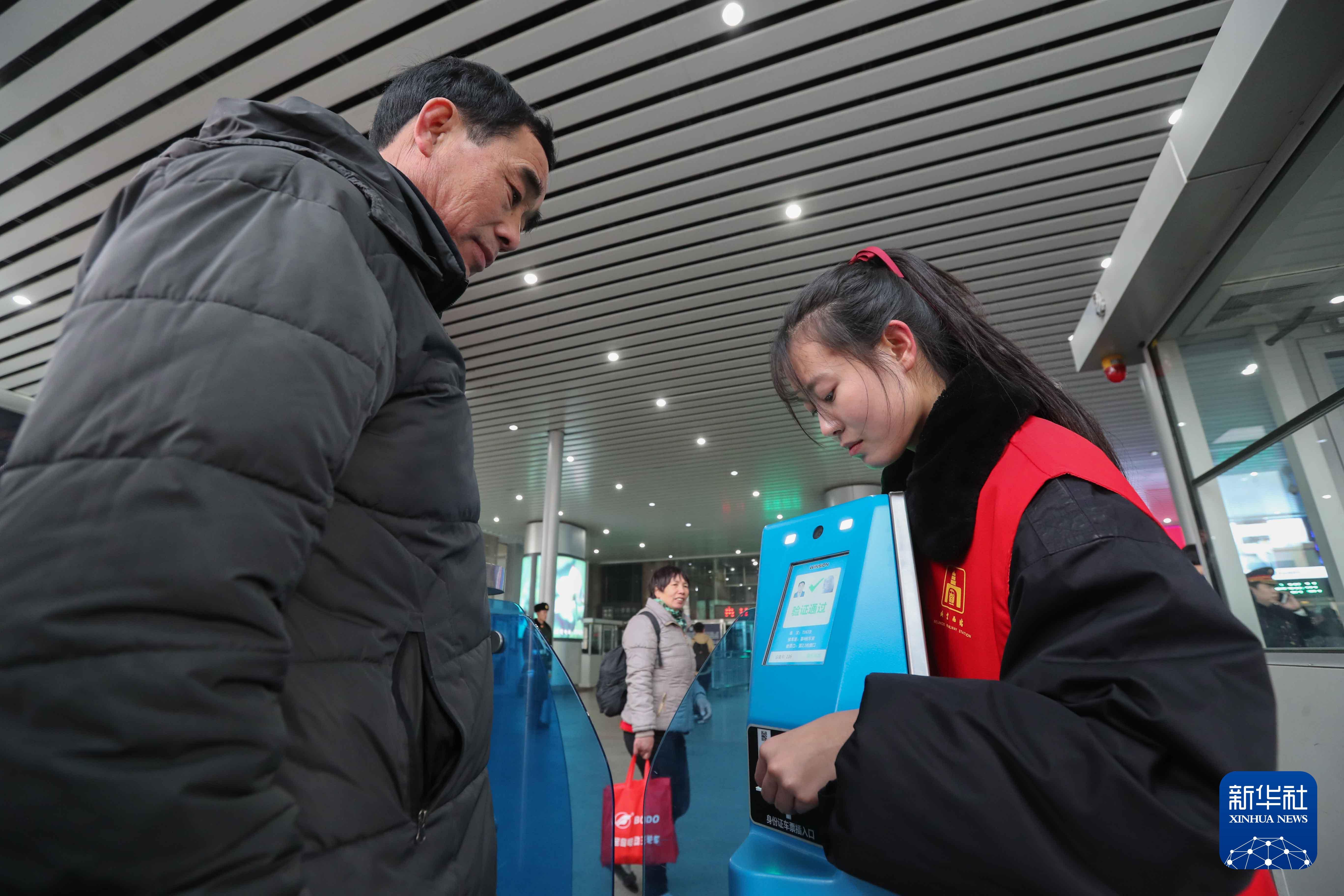 2017年1月17日,旅客(左)在北京西站“刷脸进站”。新华社记者 邢广利 摄