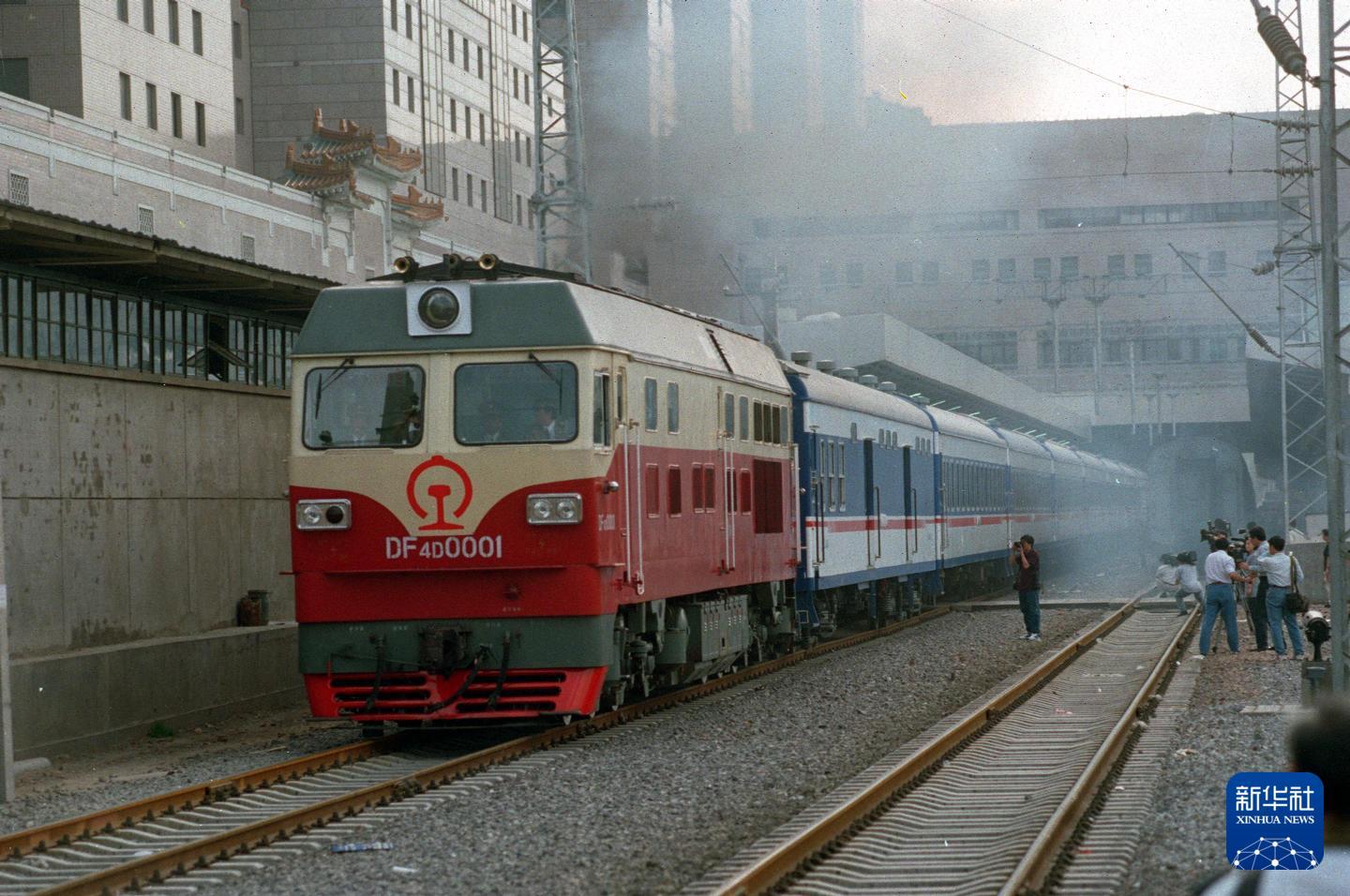 1997年5月18日,列车缓缓驶出北京西站。新华社记者 唐召明 摄