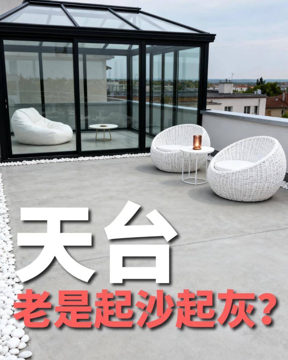 03、打扫成了日常,灰尘从不缺席本以为住得高就不会脏,结果露台地面不到一周,就积了一层灰,下雨还会有水渍,想保持美观就得经常冲洗。我现在都直接用高压水枪,虽然省力,但就怕溅到楼下邻居晒的衣服。