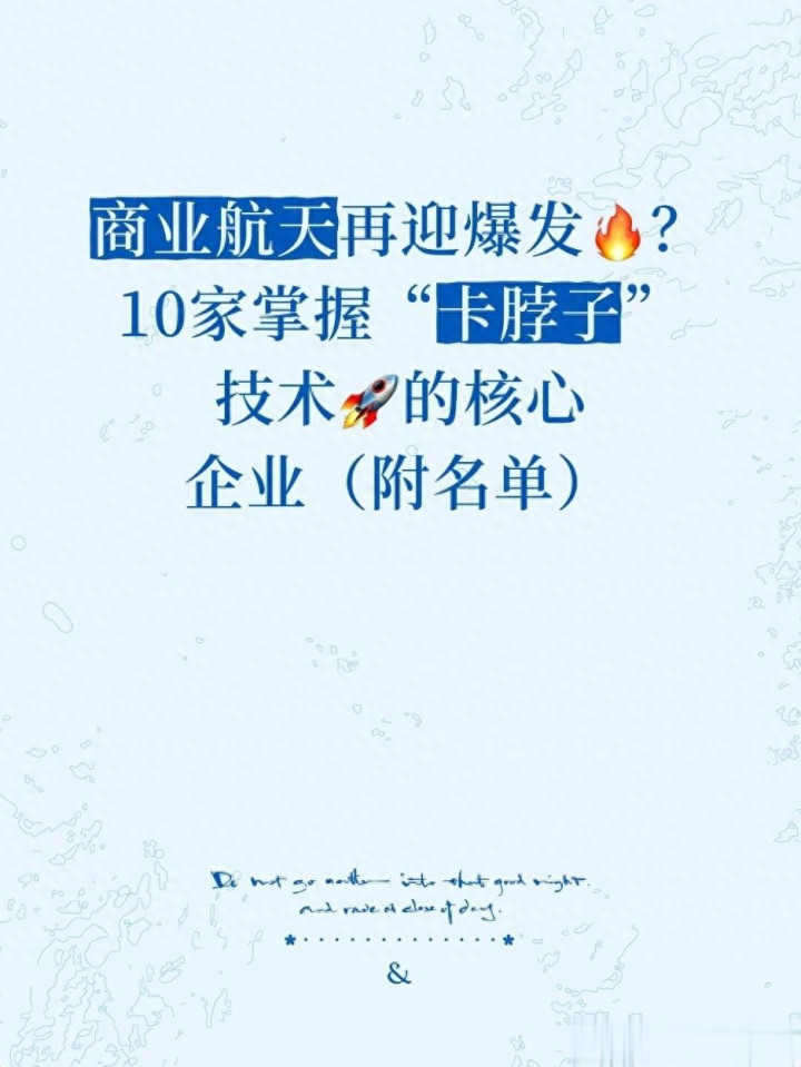 当前,商业航天产业政策导向清晰,以上交所发布的《商业火箭企业适用科创板第五套上市标准》为代表的制度指引,正引导资源向掌握核心技术的硬科技企业集中。赛道仍处于高速发展阶段,低轨星座建设、商业火箭发射频率提升、全球化应用拓展等趋势,将为具备核心技术优势的企业带来新的发展机遇。在你看来,这10家企业中,哪一家的“唯一性”优势在未来商业航天发展中更具战略价值?你还关注商业航天领域哪些具备独特技术优势的企业?欢迎在评论区分享你的观点!